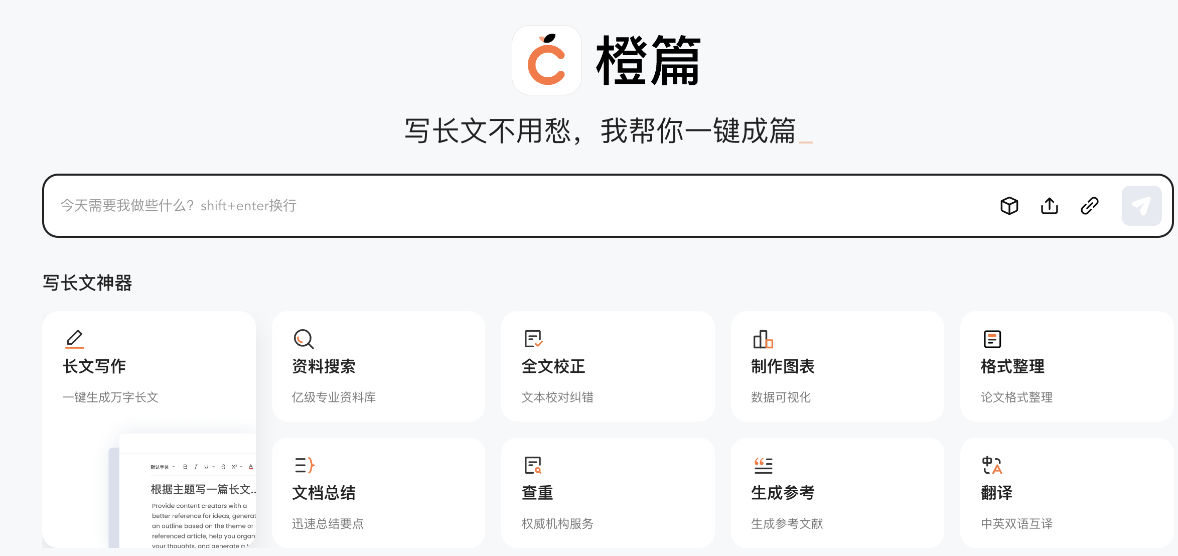 橙篇通过其全面的功能和高效的工作流程,为用户在科研、学术等领域提供了强有力的支持,成为了许多用户日常工作中不可或缺的工具。